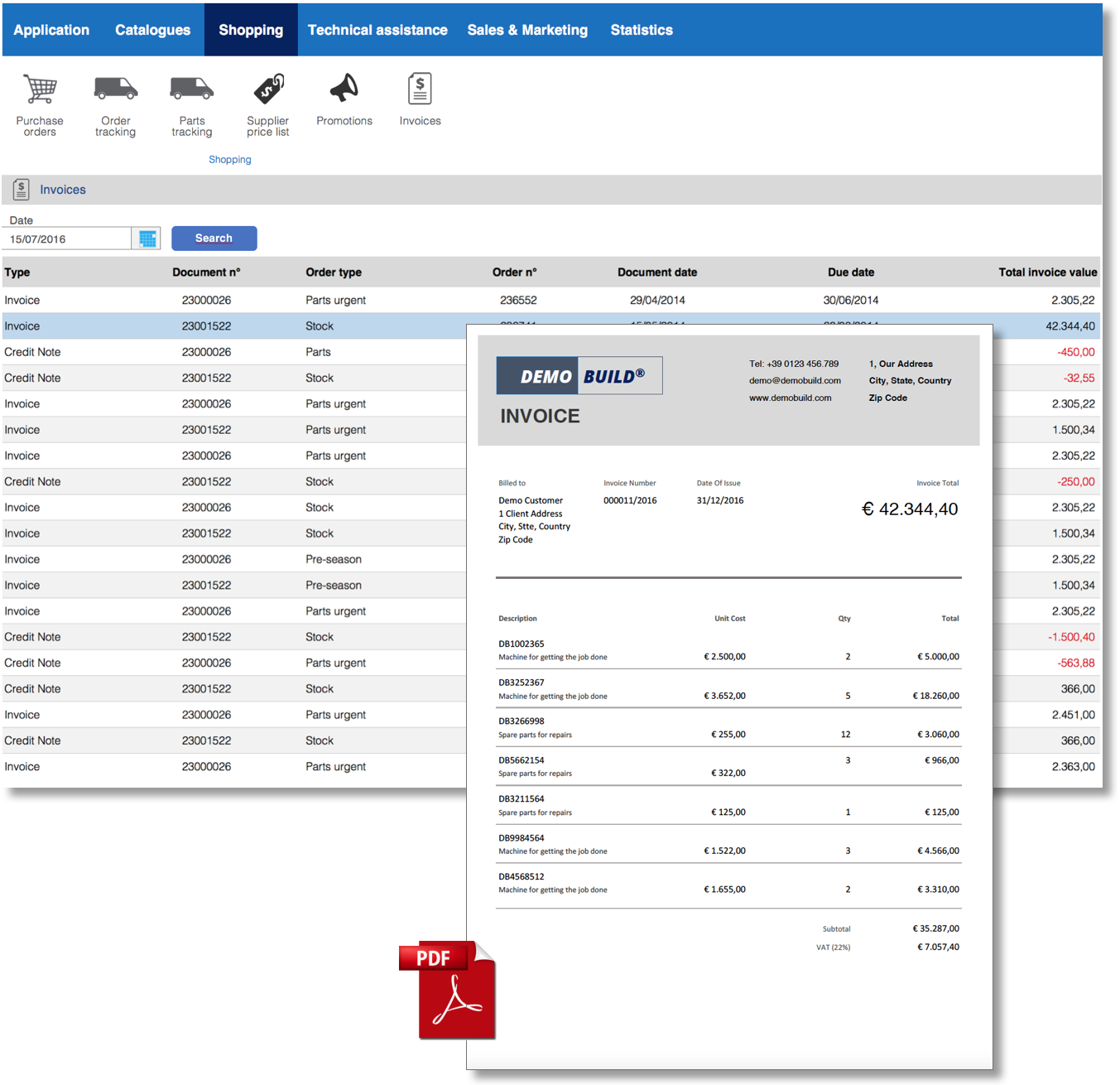 - E.g. Whilst examining an invoice, a dealer may click on the order reference number, jump directly to the order history section and examine the detailed contents of that order.