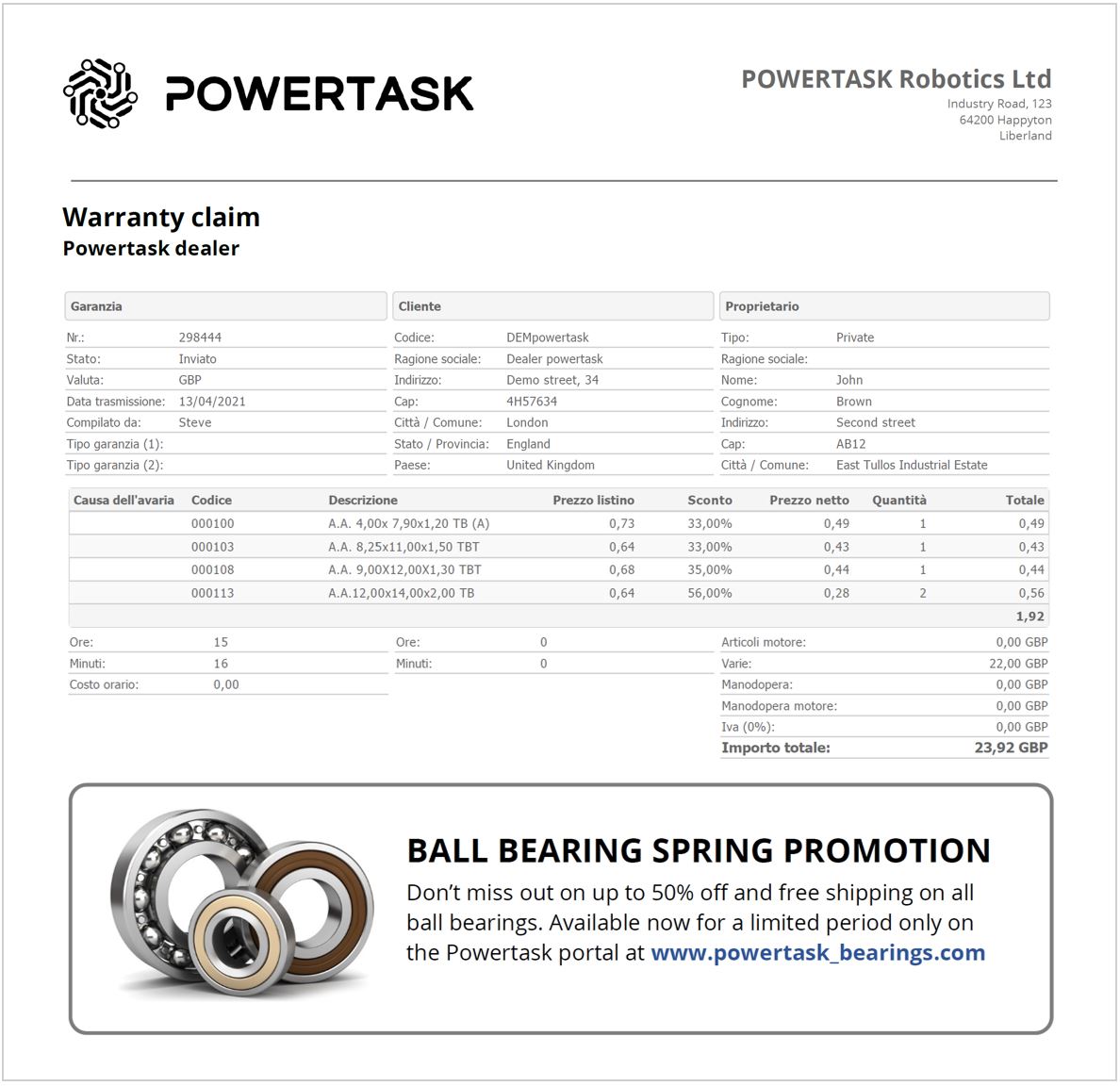 - Transaction reference number (e.g.: order n° or warranty claim n°)