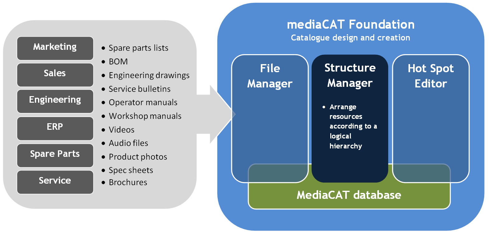 Structure Manager is a powerful editor used to organise digital documents and media assets according to a structured hierarchy. Whether browsing a Sales catalogues or a spare parts and service oriented catalogue, a logical, organised directory will enhance the browsing experience and ensure users find what they’re looking for with incredible ease.